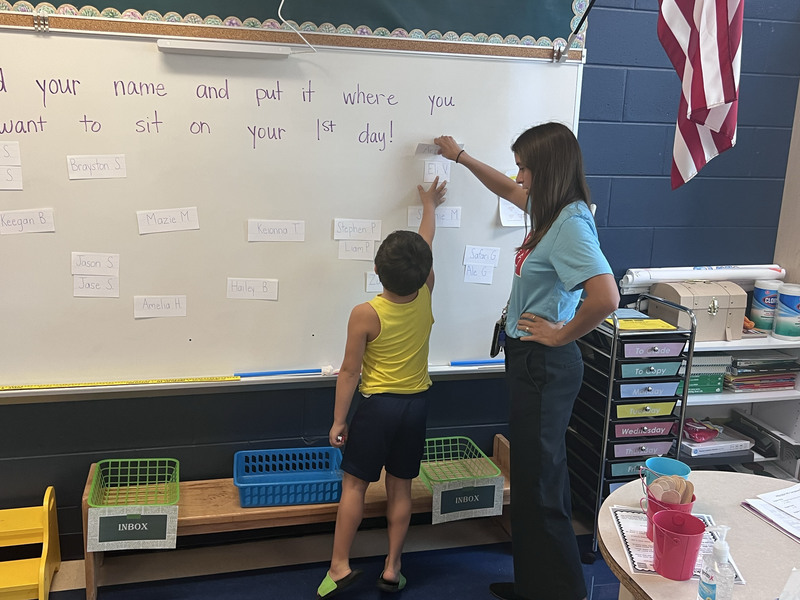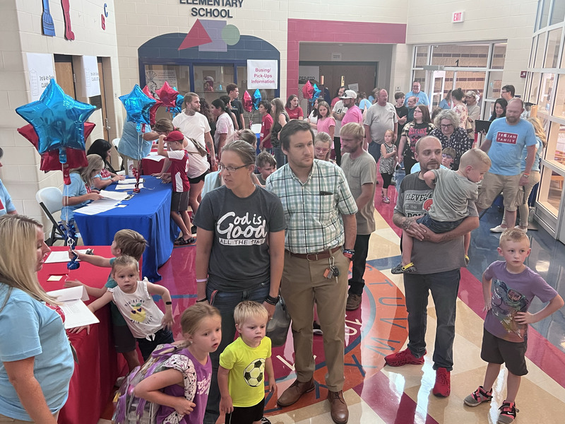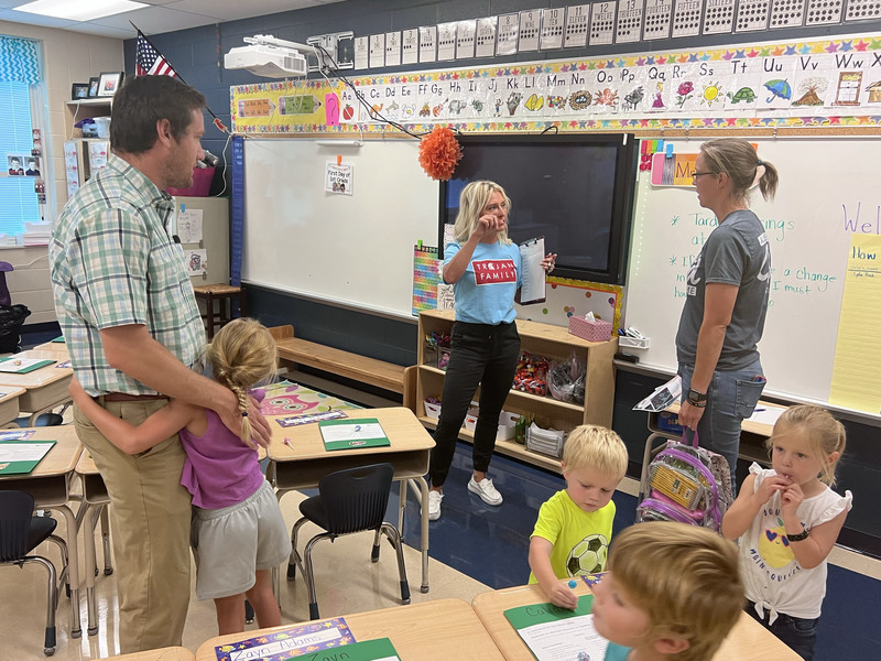 Smiling teachers greeted students and their families at the Portsmouth Elementary School Open House on Aug. 25, 2022. The doors were open to allow families to tour the school, see their child's classroom and meet their teachers. The first day of school is Aug. 29, 2022.
